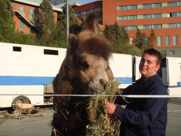 Un empleado dando de comer a un camello del circo Quiros, en marzo de 2017 en Guadalajara./GUDiario.