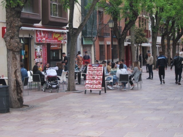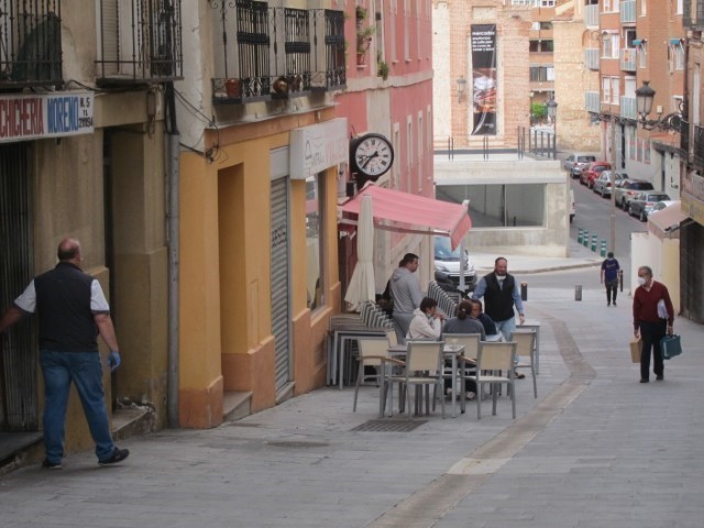 Ni en avenidas con amplio servicio de terrazas, como la de Entrepeñas, en Aguas Vivas, era posible tomarse un café. Tampoco en toda la calle Mayor, el Amparo o la Llanilla, donde sí había varias mesas en la terraza de una pastelería. Pajares advirtió que en las condiciones que abrían los bares no es rentable, solo con las terrazas al 50%, al estar cerrado el interior del local y el servicio de comedor. Y así lo parece.