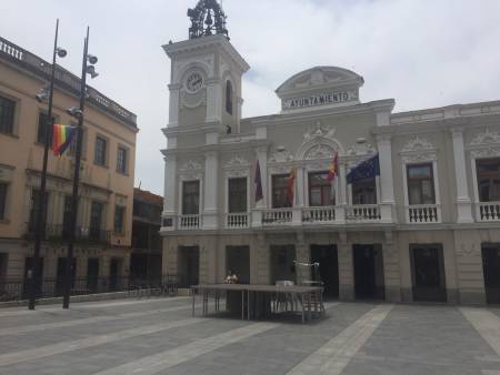 Durante el mandato de Román la bandera LGTBi se colocó en una farola de la plaza./Archivo GUDiario. Durante la época de Antonio Román se defendió este criterio ahora respaldado por el Supremo, por lo que el Equipo de Gobierno solo permitía que la bandera LGTBI se colocara en una farola de la plaza, pero no en la balconada principal.