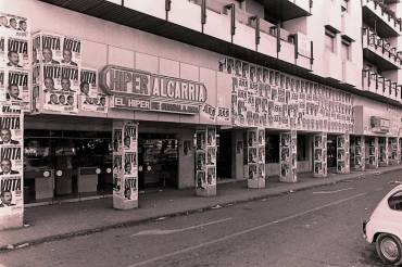La propaganda electoral en esas elecciones de 1982 se colocaba en cualquier sitio.En la foto los tres candidatos al senado por el PP: Ruiz, Paredes y Zahonero. Salieron los dos primeros. Foto: Luis Barra/Flores y Abejas