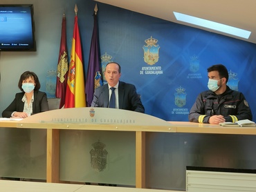 El alcalde de Guadalajara, Alberto Rojo junto a la concejala de Seguridad Pilar Sánchez y el jefe de Bomberos de Guadalajara, Ignacio Jimeno, presentaban esta mañana el proyecto del nuevo parque de bomberos de la capital que a partir de ahora pasará al proceso de licitación de obra.