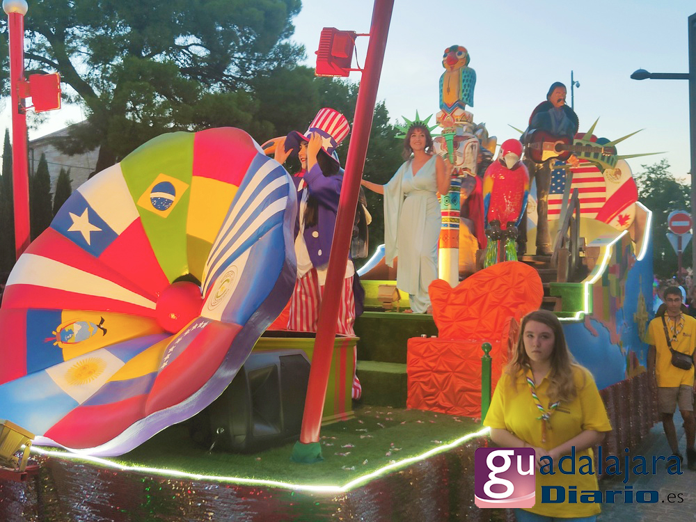 Este año se ha optado por definirlo como el desfile de la diversidad y la multiculturalidad. Para ello han marchado por Guadalajara representaciones y carrozas para las que abría camino abanderados con la bandera 'Whipala' que con siete vistosos colores en damero abría el paso en representación de las comunidades indígenas del mundo.