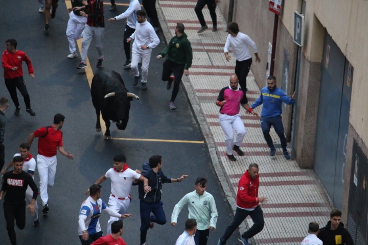 Manada muy compacta en el primer tramo que se disgregó en dos grupos desde el tramo final de La Carrera. Tres toros dos de Jandilla y uno de José Vázquez que realizaron una carrera a gran velocidad y limpiando el vallado. El resto de la manada realizó el trayecto compacta, sin mayores complicaciones y guiada por los bueyes.