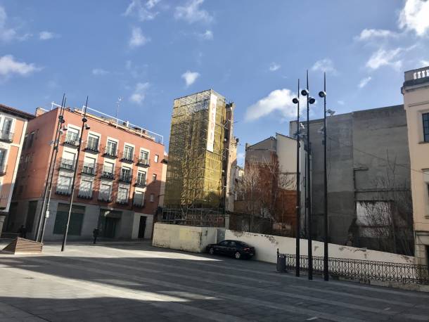 Allí ha comenzado a instalarse una gran lona que publicita la nueva promoción de viviendas que se va a construir, una promoción que levantará 6 pisos, locales comerciales y que reproducirá fielmente la fachada que en unas semanas será demolida.