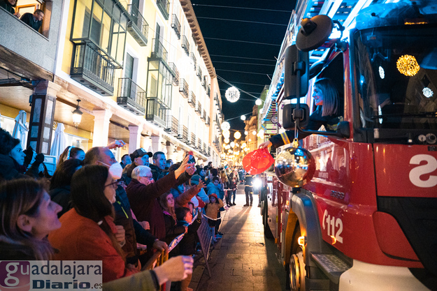 Los que tampoco faltaron cerrando el desfile fueron los bomberos de Guadalajara, especiales ayudantes de los Reyes Magos en todas las ciudades para ayudarles a alcanzas hasta los puntos más altos de las viviendas.