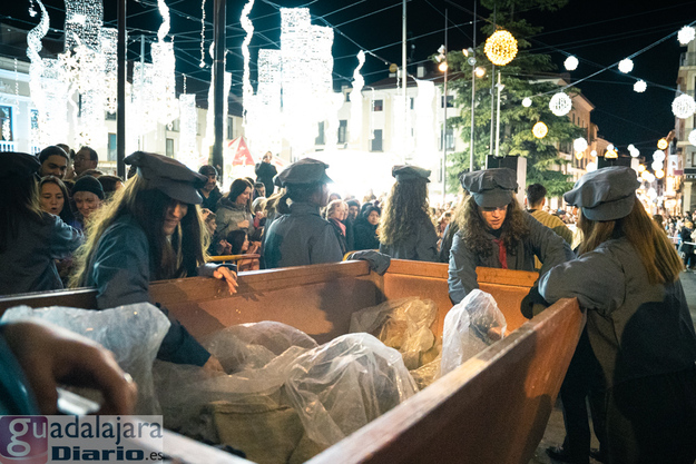 Durante el trayecto SS.MM estuvieron repartiendo muchos dulces... Hasta 1.500 kilos, pero esta vez de gominolas, pensando en todos los niños de Guadalajara puesto que no contenían ni gluten ni lactosa, además de ser veganas.