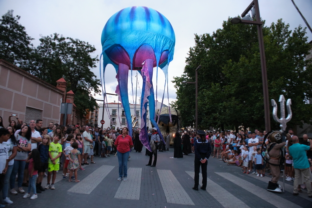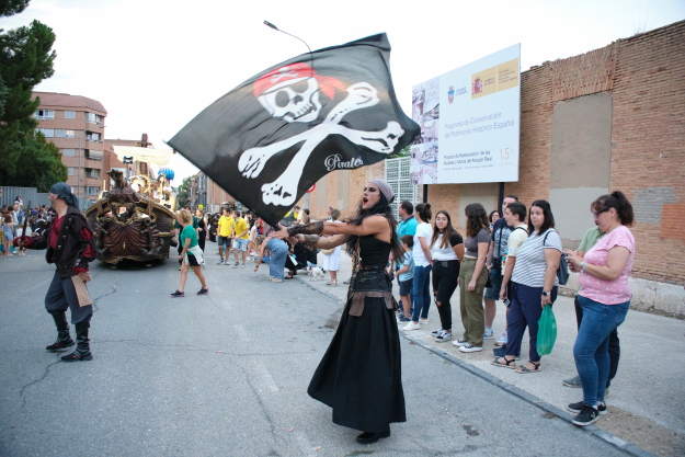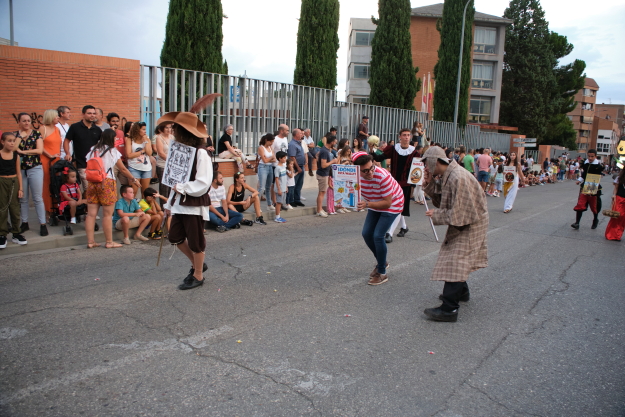 Las oscuras nubes concentradas en los altos de la Alcarria amenazaban un desfile que este año estaba dedicado temáticamente a las grandes obras de la literatura; así, a secas y genéricamente. Una temática que ya estaba definida en el pliego de condiciones de contratación que había dejado el equipo de gobierno municipal de Alberto Rojo y que se resolvió a partir del 31 de julio pasado por la junta local de contratación ya con la nueva corporación regida por la nueva alcaldesa, Ana Guarinos.