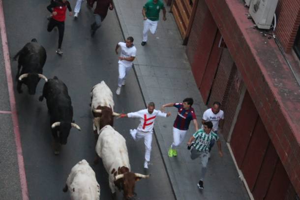 Tal vez el momento más comprometido se produjo en Santo Domingo cuando un toro enfiló a por un joven y lo acabó estampando contra las talanqueras, aunque luego volvió a incorporarse a la manada. El joven fue trasladado al hospital con una posible luxación de hombro. No hubo más heridos.