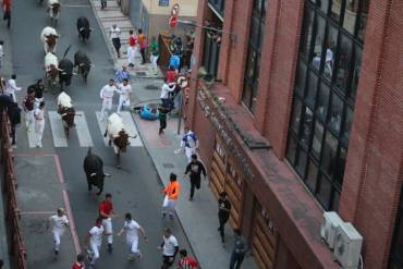 Encierro rápido que solo vivió momento de riesgo en la entrada de la plaza, con la caída de varios corredores sin consecuencias. Ningún mozo fue trasladado a los centros de salud de la capital.