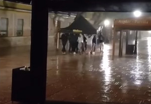 Sin embargo, según se puede ver en el vídeo publicado en redes sociales, un grupo de aproximadamente una decena de jóvenes cogió la carpa que protegía los equipos y se la llevaron para taparse ellos de la lluvia, mientras iban cantando por la calle.
