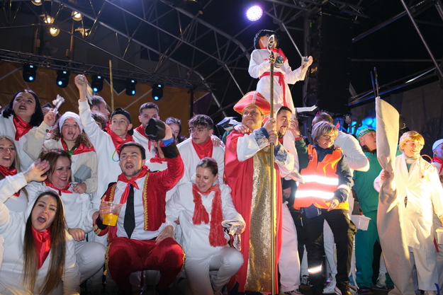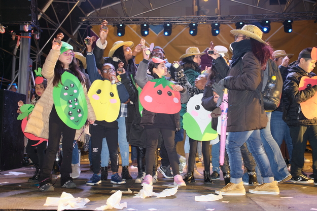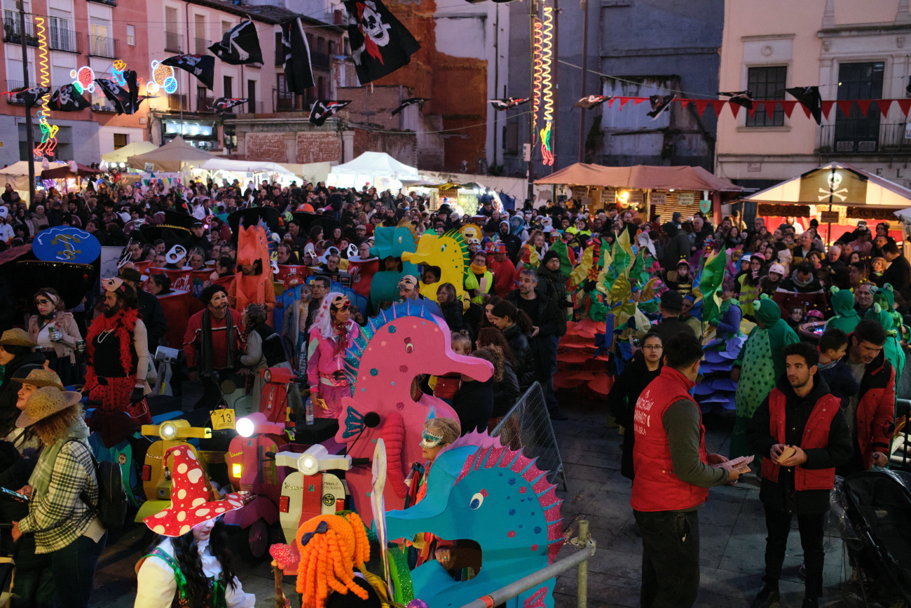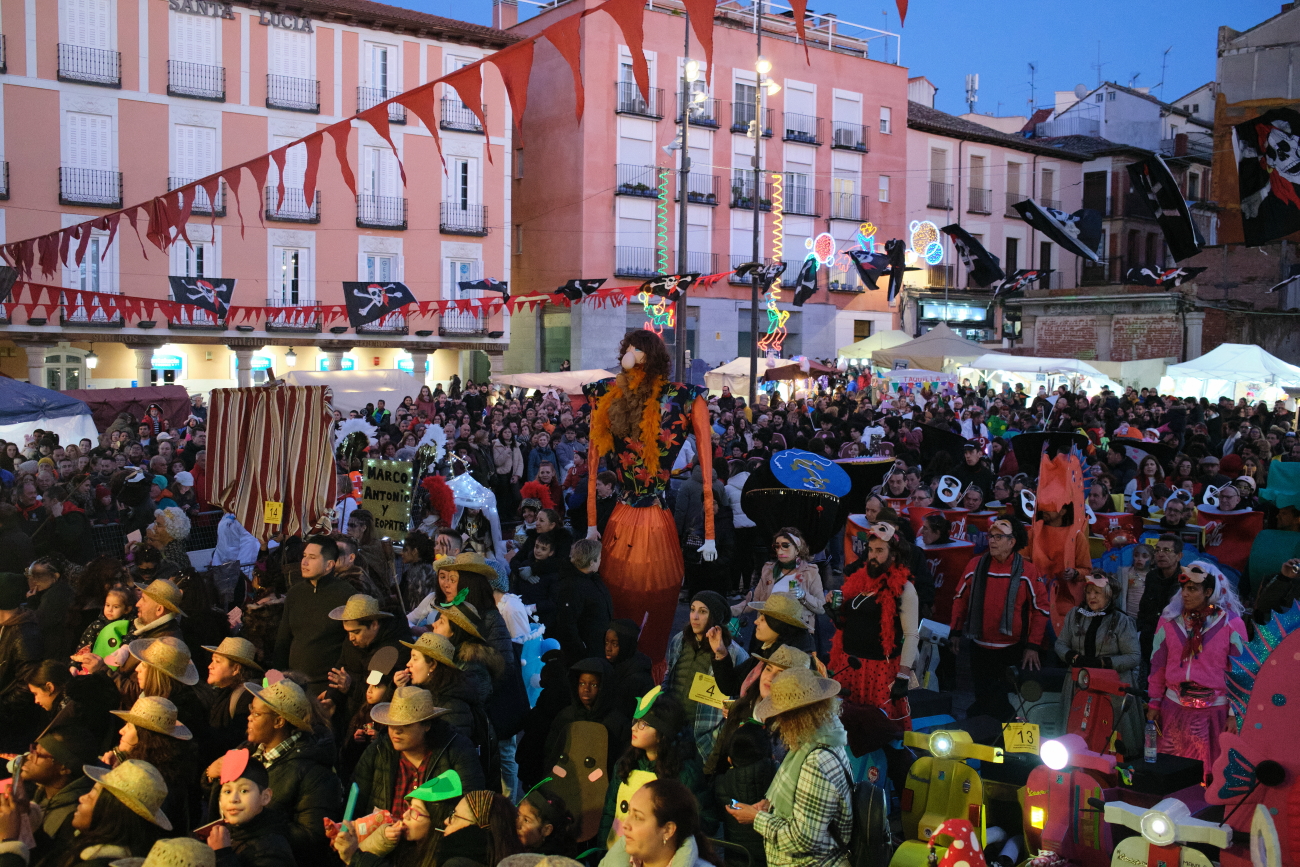 La plaza Mayor se quedó pequeña para acoger tantos disfraces y tanto público, con la novedad de poder disfrutar de los retos que un divertido bingo planteaba a los participantes, mientras el jurado deliberaba.