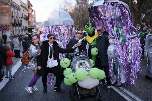 Así las comparsas y personas a nivel individual pudieron participar del desfile que se abría puntualmentes desde el Fuerte de San Francisco. Desde allí, enfilando La Carrera, fueron arropados por cientos de personas que disfrutaban ya de disfraces de fantasía como de otros más populares o de referencias a la actualidad.