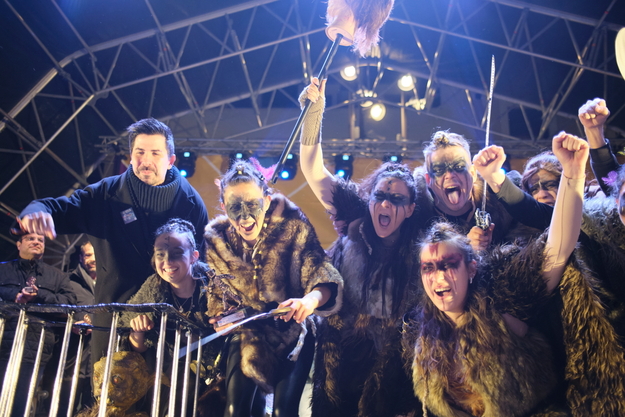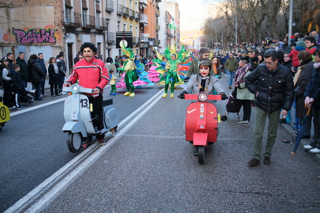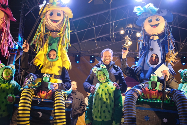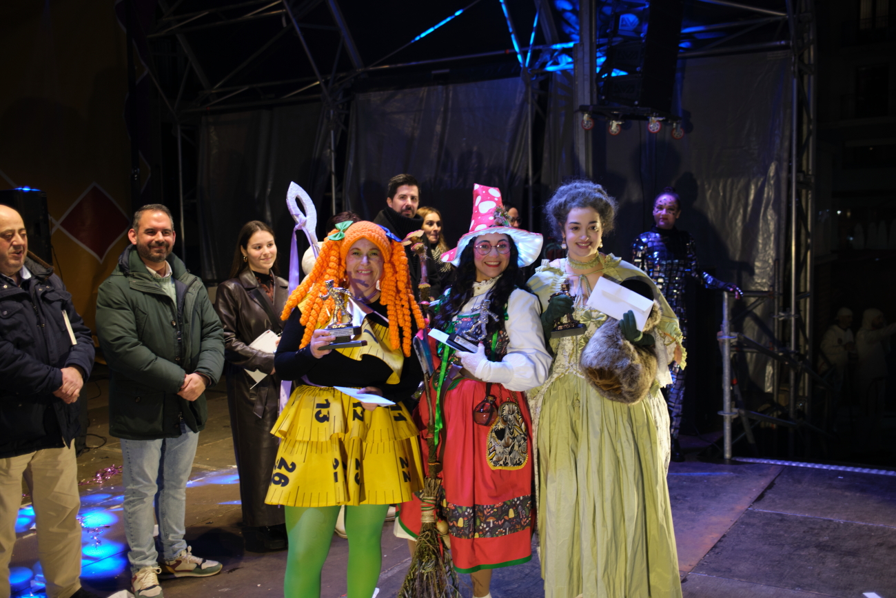 En grupos, algunos de ellos con más de 50 personas, el primer premio (1.000€) fue para las “Brujas fofuchas”, con una elaboración muy artesanal, el segundo premio (800€) para “Con vespas y a lo loco”, con toda una escudería realizada en cartulinas, el tercer premio (600€) “Vikingos”, con barco incluido, y el cuarto premio (400€) para “Los enanos y la muñeca Calenda”.