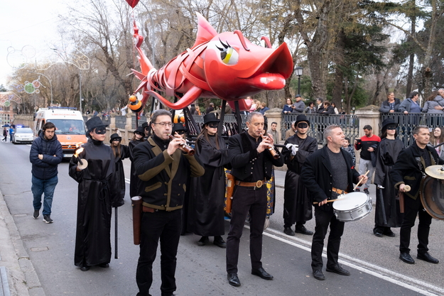 Quema de la sardina ante otros munícipes de Guadalajara. Foto: Ayto. GUCasualidad no es que en estas fechas del siempre desapacibles de febrero y a lo largo y ancho de Guadalajara (y la mitad de la España Norte) nos invadan hasta los más recónditos rincones las: Botargas, Mascaritas, Vaquillones, diablos, mojigangas, zaharrones, zamarrones, zagarrones, zarramacos, zorromacos, cigarrones, harramachos, cachimorros, guirrios, peliqueiros, colachos, jarramplas, carantoñas, foliones, visparras, jurrus…