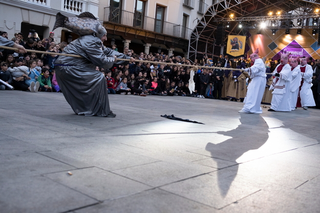 Así, siguiendo la tradición hasta que el Sol se ponía sobre Guadalajara en la Plaza Mayor y el el Mercado de Abastos, el Ayuntamiento capitalino ha escenificado esta despedida a las tentaciones de la carne. Donde Doña Cuaresma se impone temporalmente ante Don Carnal (en todos sus sentidos) con el simbólico reparto de las sardinas asadas y la quema de su efigie.