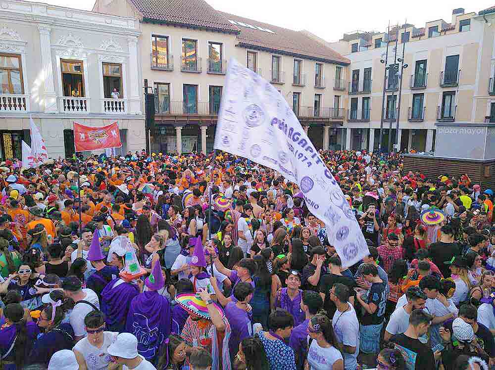Pañuelos por aquí... pañuelos por allá, entre los miles de colores en que se ha convertido la Plaza Mayor de Guadalajara con el chupinazo popular que abre las Ferias y Fiestas de Guadalajara 2024, después de que el viernes se diera el pregón oficial en el Teatro Buero Vallejo.