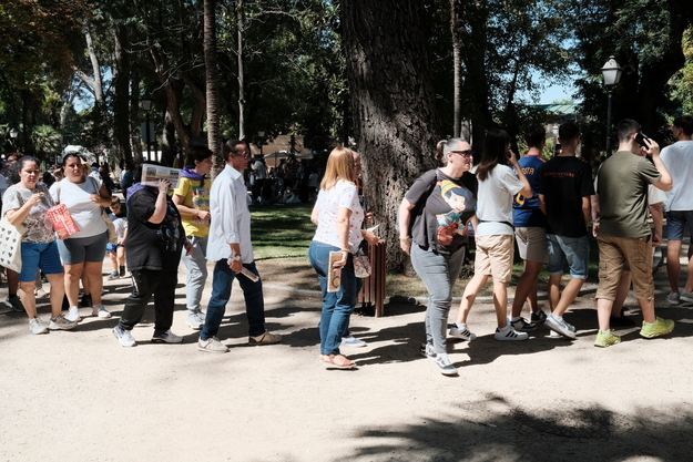 Nadie quiso faltar a esta paella Solidaria, tato de representantes públicos como de público, porque aunque la paella se repartía en las inmediaciones del merendero de San Roque, junto a la ermita, la fila de personas que esperaban su turno llegaba en algunos momentos hasta la puerta de la piscina de San Roque.