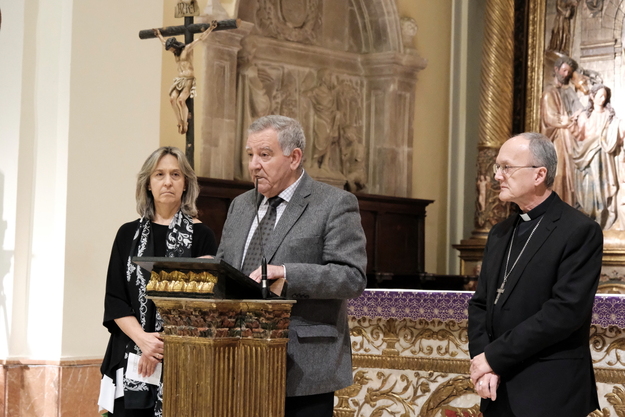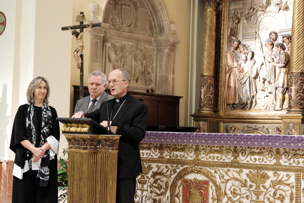 El padre Ángel junto al obispo de la diócesis, Julián Ruiz, la alcaldesa, Ana Guarinos y el presidente de la fundación Siglo Futuro, Juan Garrido. Foto: Eduardo Bonilla.