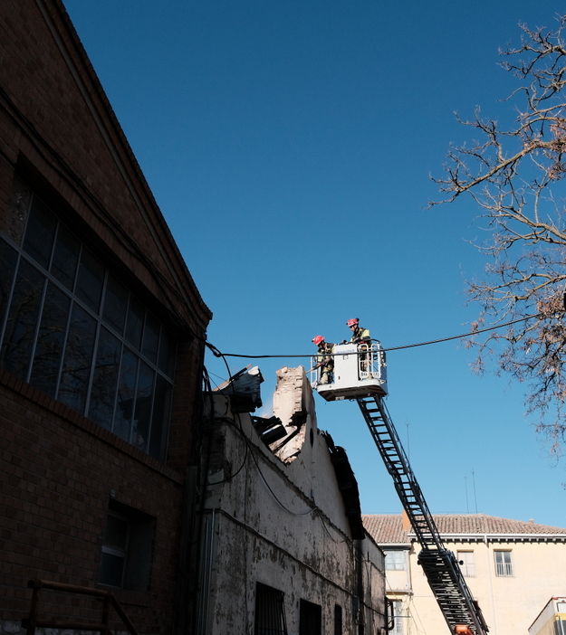 Así, los bomberos se han encargado de retirar los materiales más susceptibles de derrumbarse y producir daños futuros.