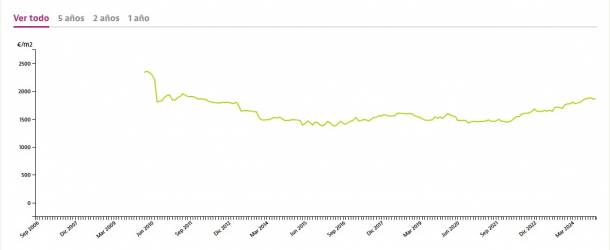 Vivienda-Guada-ventaEvolución de la vivienda en alquiler en Guadalajara. Fuente: idealista.comEn 2010, coincidiendo con el apogeo de la crisis inmobiliaria, en la ciudad de Guadalajara se pagaba en vivienda usada 2.360 euros/m2 en el casco histórico, según datos del portal inmobiliario más potente de España, idealista.com. El precio se derrumbó y casi 15 años después, en diciembre de 2024, el precio ha ido escalando hasta los 1.861 euros/m2, sin que sea una promoción especial; y no deja de subir. En cuanto a vivienda nueva, en el casco histórico se está llegando a pagar, ahora, cerca de 2.400 euros/m2.