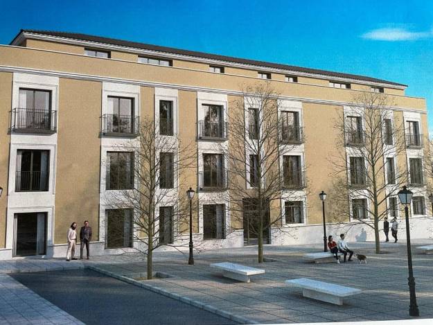 pae diputacionInfografía del PAE presentado en la plaza de Moreno y que contemplaba la construcción del edificio de la parte derecha en la fotografía. Ha sido desajudicado al no haber cumplido el nuevo propìetario.