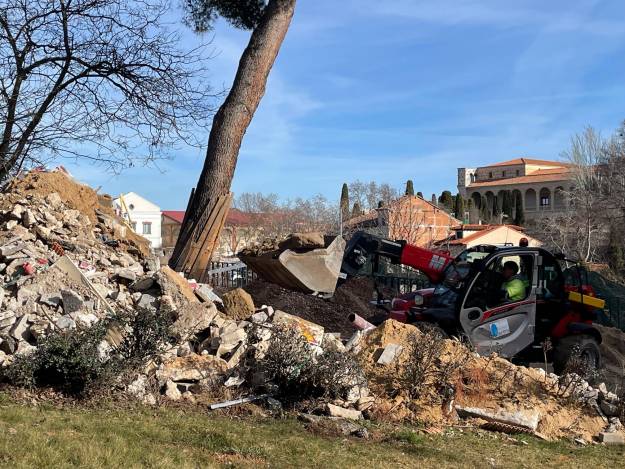 Todos los materiales de la obra del mercado y de esta obra se acumulan en la calle Cardenal González de Mendoza. Esta mañana empezaban a ser retirados/ Gu Diario