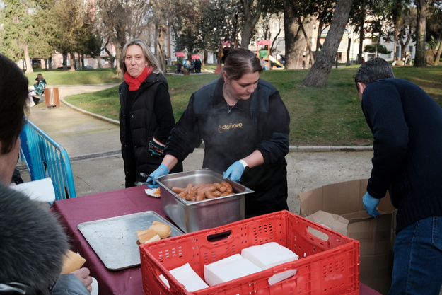 Para recordar esto, los concejales y alcadesa de Guadalajara 'no olvidan las tradiciones' y con apremio organizaban y ofrecían en el orden de fila el 'bocata' de chorizo a los asistentes en el parque de La Concordia. Según datos ofrecidos por el propio ayuntamiento en este Jueves Lardero se repartieron 2.600 chorizos entre los vecinos.