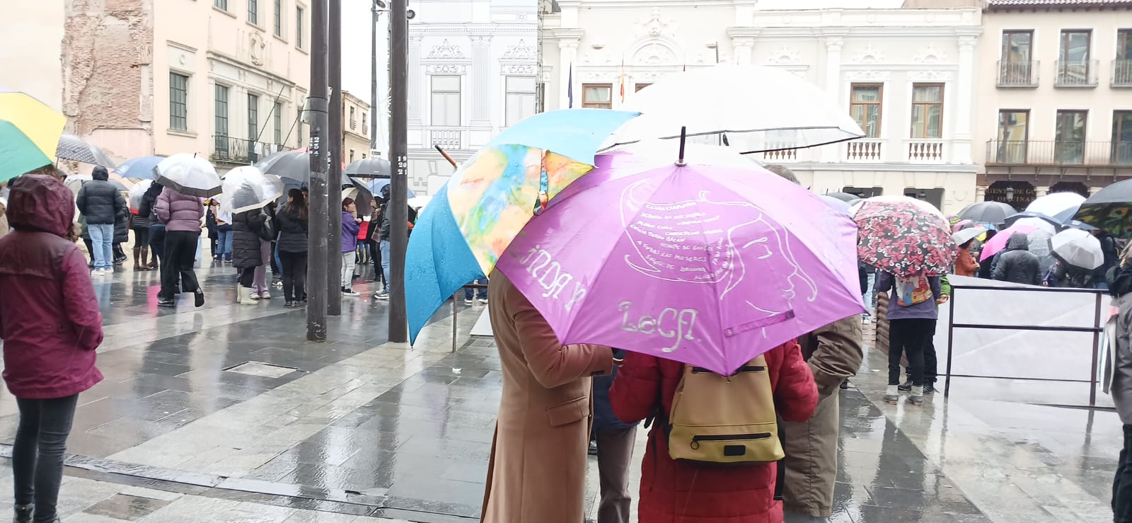 Foto: Guadalajaradiario.esLa concentración comenzaba en la plaza de Santa María, mejor dicho, bajo los soportales de la concatedral, puesto que las lluvias anunciadas no faltaron a su cita.
