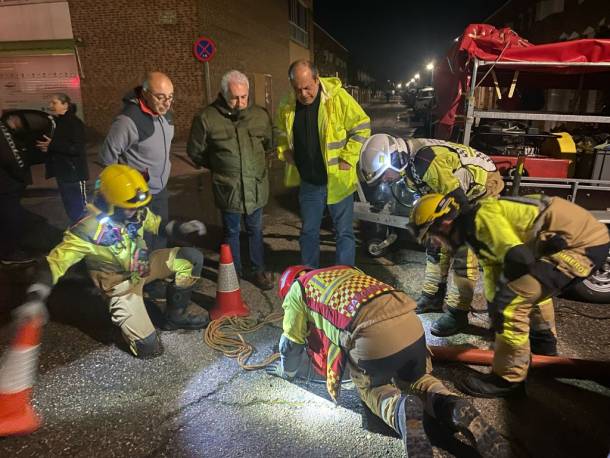 El concejal de seguridad Jose Mª Antón, bomberos, operarios municipales y vecinos han pasado buena parte de la noche en vela intentando minimizar la entrada de agua a garajes de la calle José MªAlonso Gamo como consecuencia de la crecida del Río Henares