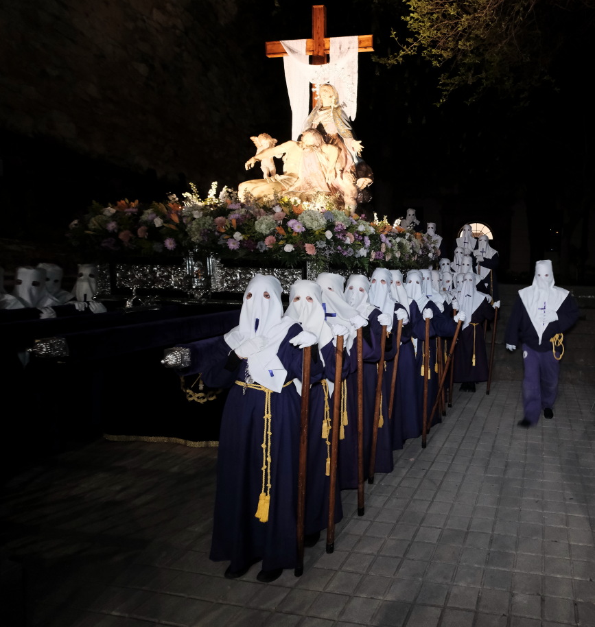 La procesión del Jueves Santo sale a las 11 de la noche y sube por la remodelada calle Miguel Fluiters, Plaza Mayor y Jardinillo, por lo que deben de esperar a que termine de procesionar el paso del Nazareno, que se recoge sobre las doce de la noche en San Nicolás.