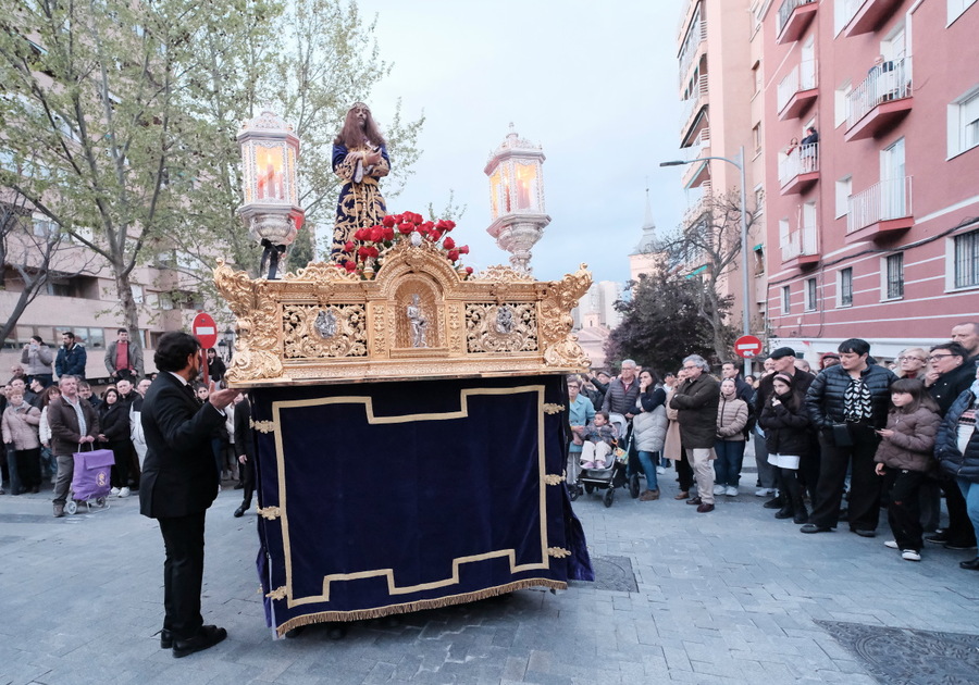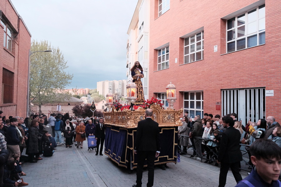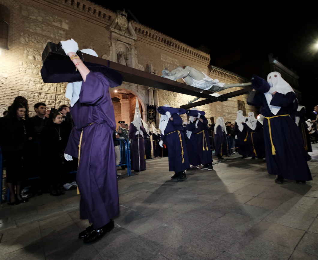 Tanto el trono del Cristo como el de la Virgen se carga con varas al estilo castellano más tradicional. Esta austeridad castellana se expresa también en la música a cargo del grupo de tambores de la Cofradía y del grupo de dulzaineros Mahurotos de Guadalajara, que interpretan piezas de dulzaina escritas para Semana Santa.