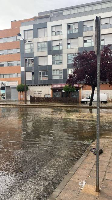 En la avenida de Francia el agua ha superado los bordillos. También informan de la inundación de algunos bajos como en el Colegio salesiano en la calle Toledo.