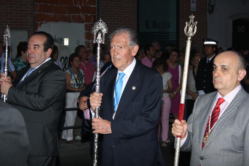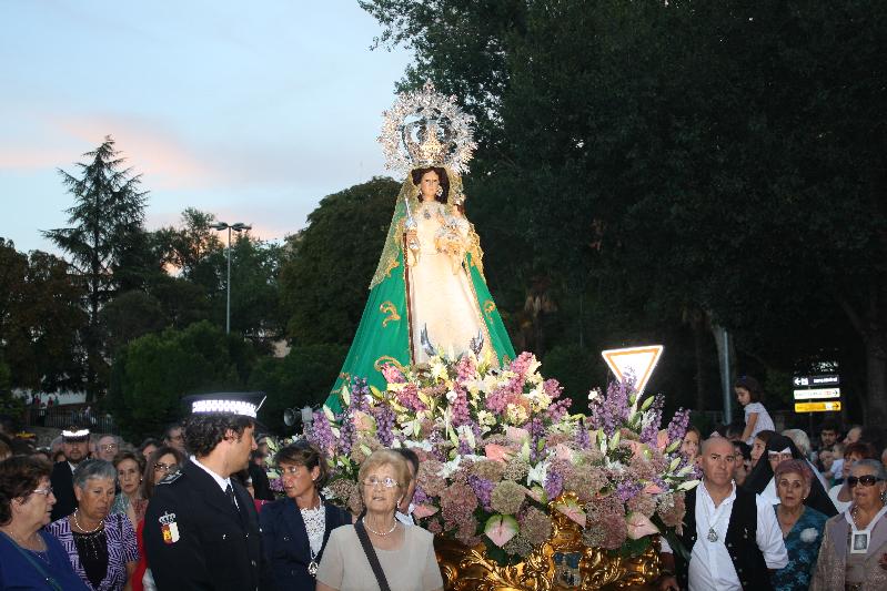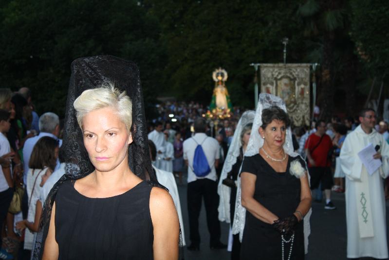 Delante de la imagen de la virgen, formaciones de mujeres con mantilla y peineta y la directiva de la Real Cofradía, con el presidente Emilio Vegas, y el ex alcalde José María Bris, que es hermano mayor honorario. Y detrás de la carroza, el obispo monseñor Atilano Rodríguez y sacerdotes de la ciudad. Luego venía la representación institucional, abundante como siempre en contraste con otars procesiones.