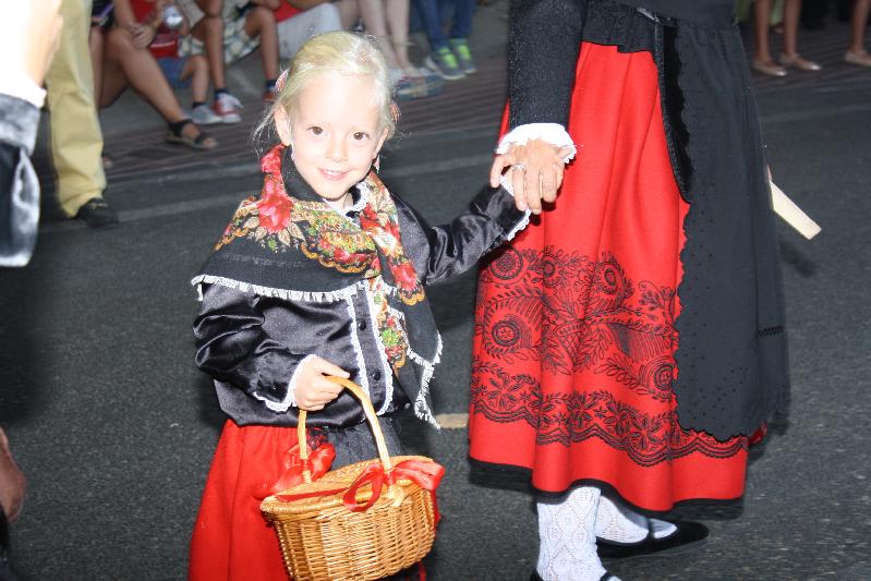 Lo que nunca falla: la devoción y el cariño de miles de arriacenses por su patrona, la Virgen de la Antigua, alcaldesa perpetua de Guadalajara, que se expresa en una masiva participación de personas ataviadas con el traje de alcarreña. Como siempre, muchas más mujeres que hombres entre las filas, y más niñas que niños, estos últimos con el traje de melero: blusón, boina y garrotillo.