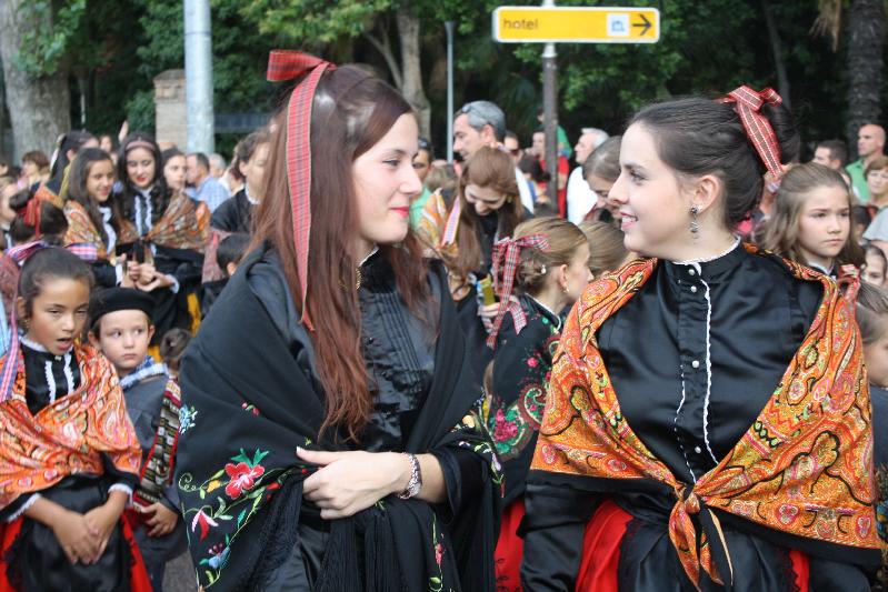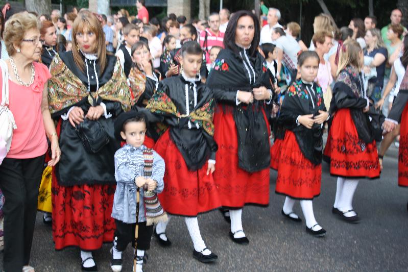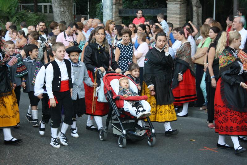En grandes cestas se llevaron los frutos con las ofrendas que tradicionalmente se hacen a la virgen por los antiguos partidos judiciales y algunos pueblos de la provincia. Tampoco faltaron los zancudos del grupo de bailes de La Cotilla ,que bailaron alguna pieza. Hubo representación de alguna casa regional, como la de Extremadura, que también ese día celebra a su patrona la Virgen de Guadalupe.