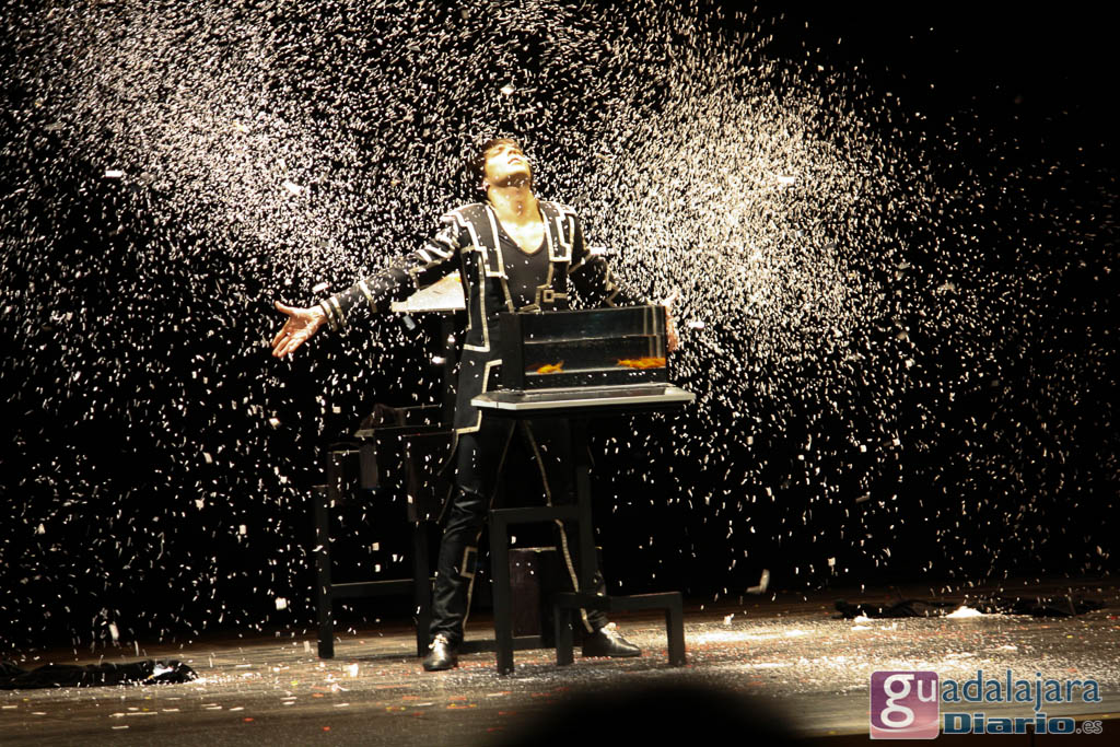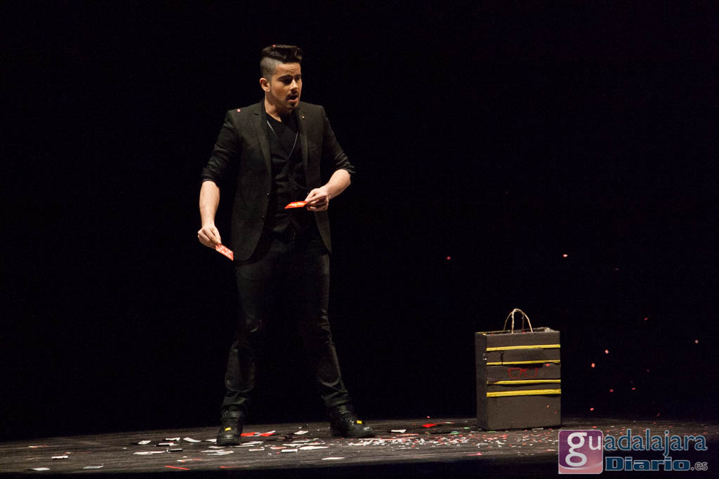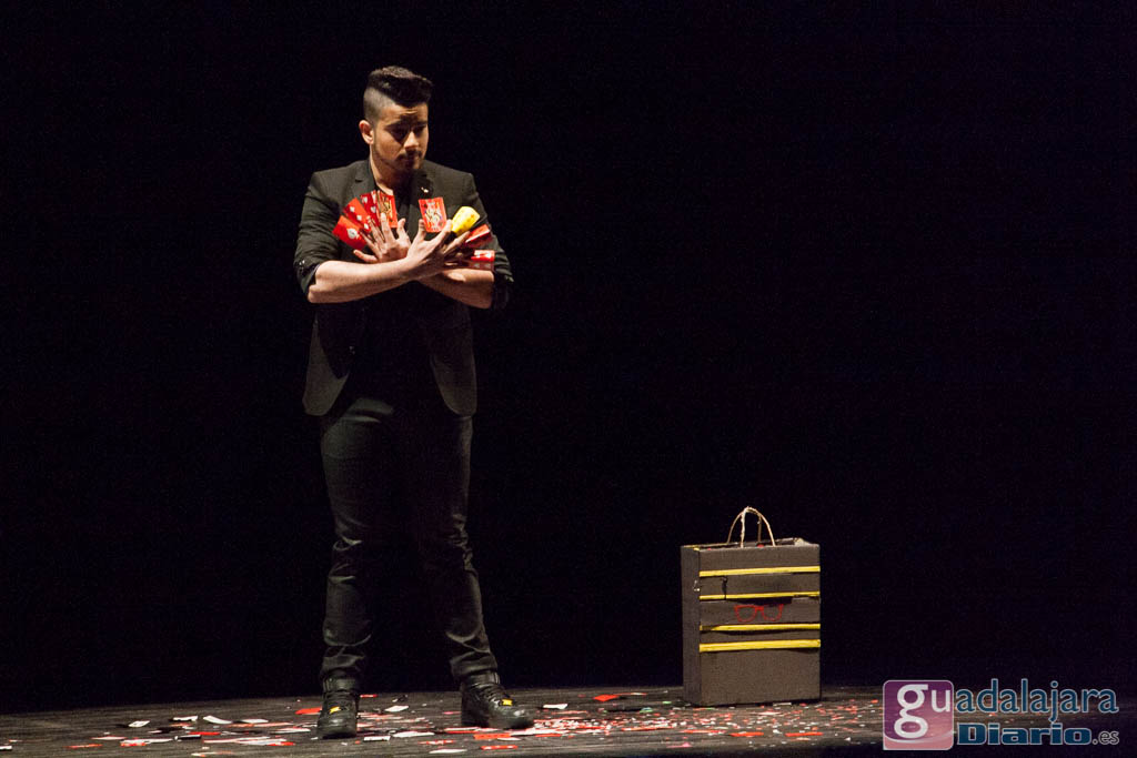 Yunque es Premio Mundial de Magia en la especialidad de Grandes Ilusiones, y no en  vano abrió y cerro la Gala de Guadalajara. En un teatro tan grande como el Buero Vallejo, la magia del castellonense, que utiliza grandes artilugios y plataformas, es muy agradecida por el espectador, pero es que su números estuvieron también adornados de variedad, espectacularidad y emoción. Una mujer que entra en una caja que es asaeteada por todos los lados, camas que levitan, espadas  y lanzas de fuego que entran y salen de un baúl con la chica dentro,  personas que desaparecen o se transforman en otras, la camisa de fuerza que colocan a Yunque,y sale de ella cual Houdini, o el espectáculo del mago lanzando flechas en mitad del patio de butacas y que se van a clavar en una diana del escenario...Magia en estado puro la de este Yunke, que muchos habrán conocido en programas como El Hormiguero y que fue la gran estrella de la Gaña de este año.