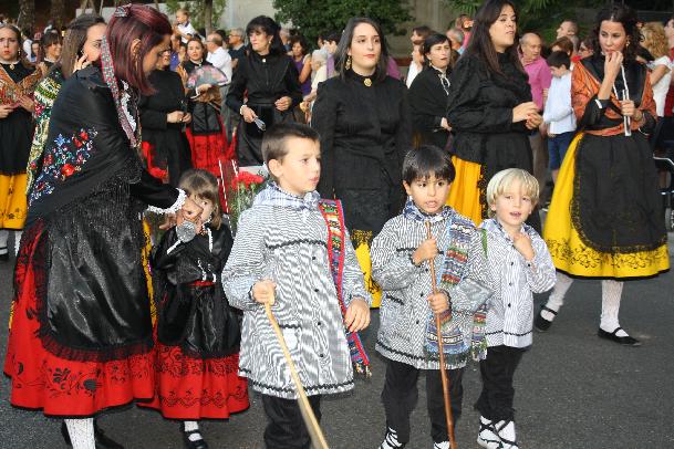 Lo que nunca falla: la devoción y el cariño de miles de arriacenses por su patrona, la Virgen de la Antigua, alcaldesa perpetua de Guadalajara, que se expresa en una masiva participación de personas ataviadas con el traje de alcarreña, más que el año pasado según la opinión general. Lo que no cambia: muchas más mujeres que hombres entre las filas, y más niñas que niños, estos últimos con el traje de melero: blusón, boina y garrotillo.