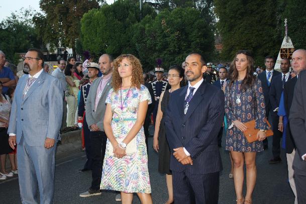Delante de la imagen de la virgen, formaciones de mujeres con mantilla y peineta y la directiva de la Real Cofradía, con el presidente Emilio Vegas, y el ex alcalde José María Bris, que es hermano mayor honorario. Y detrás de la carroza, el obispo monseñor Atilano Rodríguez y sacerdotes de la ciudad. Luego venía la representación institucional, abundante como siempre en contraste con otras procesiones.
