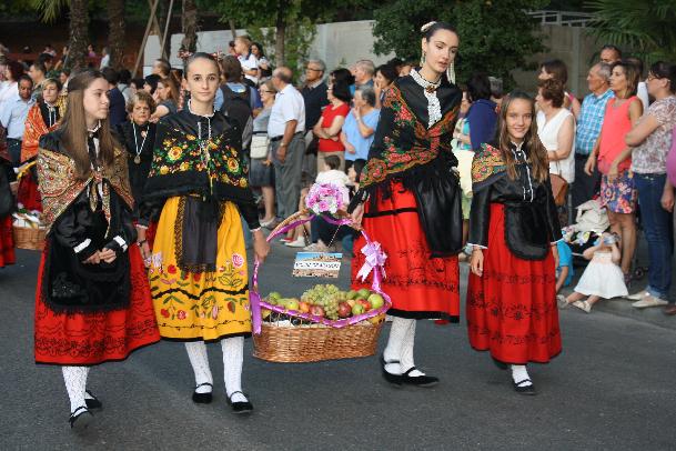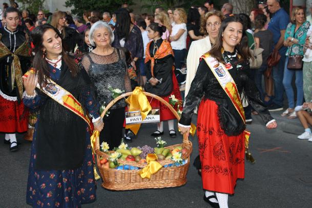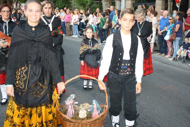 En grandes cestas se llevaron los frutos con las ofrendas que tradicionalmente se hacen a la virgen por los antiguos partidos judiciales y algunos pueblos de la provincia, y que terminada la procesión se dona al asilo. Tampoco faltaron los zancudos del grupo de bailes de La Cotilla,que bailaron alguna pieza. Hubo representación de alguna casa regional, como la de Extremadura, que también ese día celebra a su patrona la Virgen de Guadalupe.