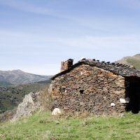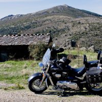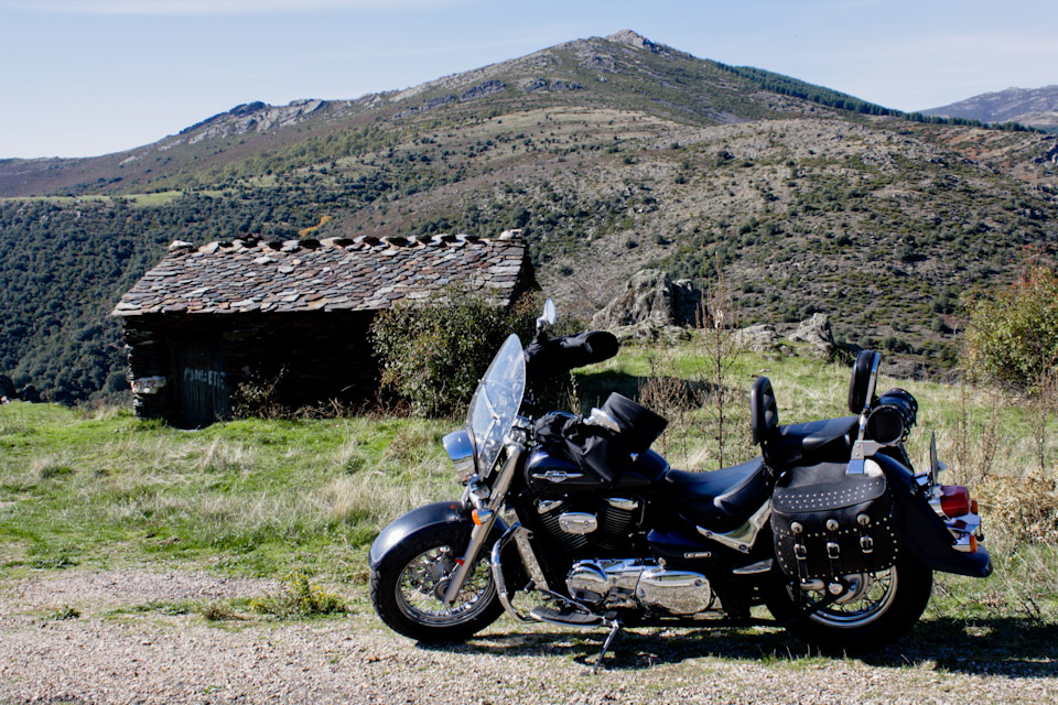 Segunda parada junto a una solitaria taina de pastores –ahora refugio-- frente a la que se ha parado la brillante Harley Davidson de un motero viajero. Un día me contaron que en ella se rodó aquel famoso anuncio de un todoterreno en el que un lugareño con boina, el tío Jesús, preguntaba a un viajero que comía alubias sin parar si el Madrid seguía siendo campeón de Europa. Desgraciadamente, Jesús ya no vive y con él se nos fue todo un personaje. Fue hasta allí con las cabras que se subían por el tejado de la taina por encargo de la productora y acabó sustituyendo al actor profesional que habían traído.