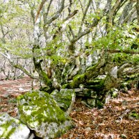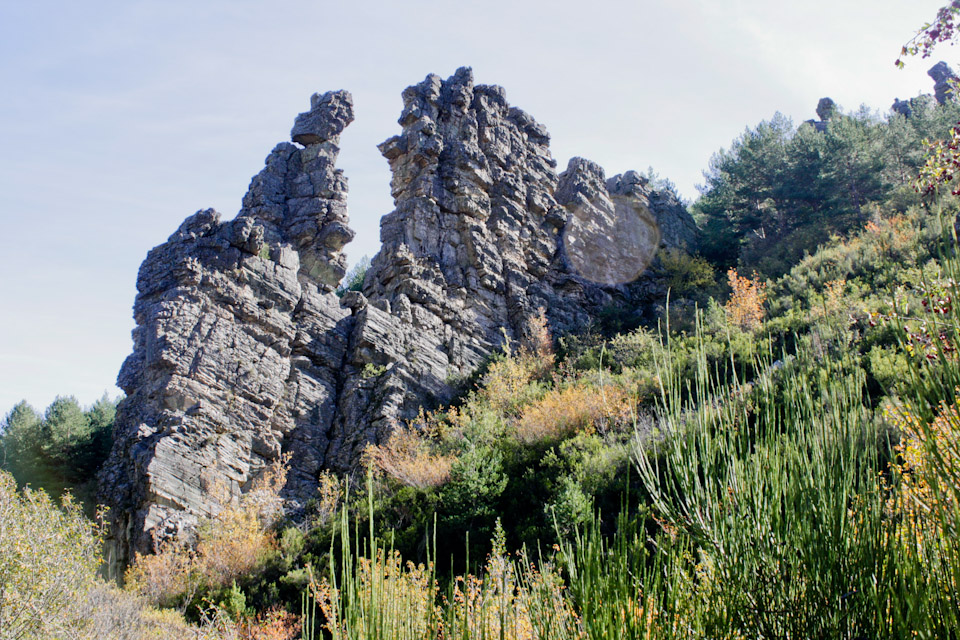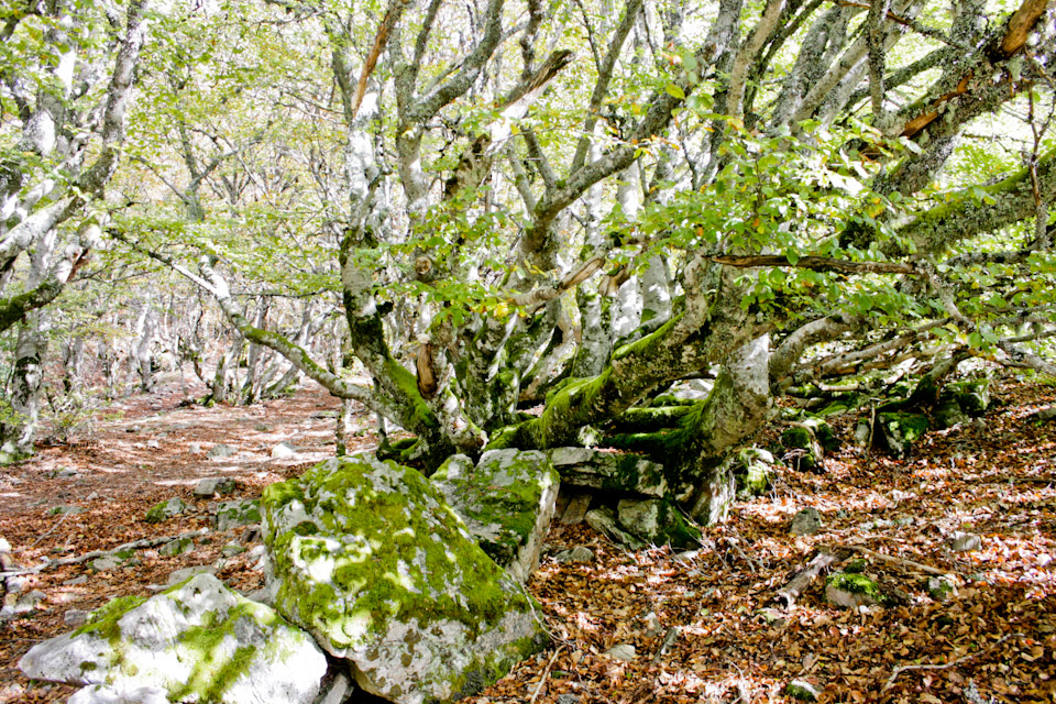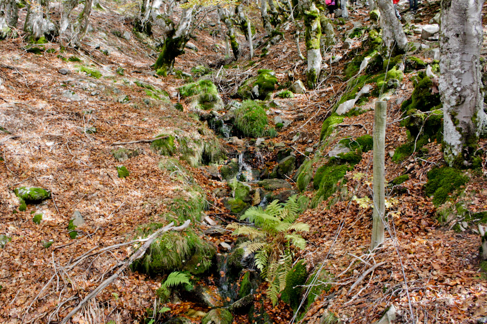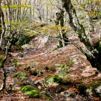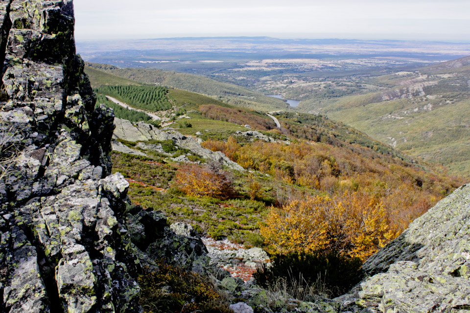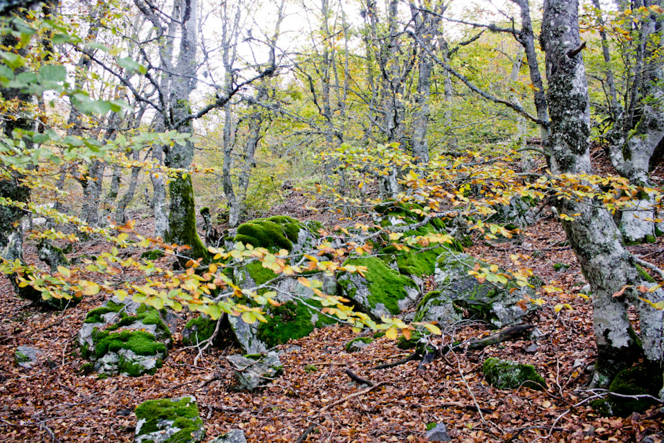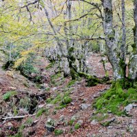 Desde el puerto de La Quesera seguimos por un camino pedregoso que sale a la derecha y que nos llevará hasta la peña de la Silla. El objetivo es contemplar el hayedo a vista de pájaro. Es apenas media hora. A partir de allí, empieza el camino hasta el pico de la Buitrera y el hayedo de Tejera negra, que nos llevarías una jornada completa. El paisaje del hayedo entre los peñascos es espectacular. En su inicio el verde es el color dominante y luego torna a tonos ocres, casi anaranjados, que terminan por caer y cubrir el suelo de un tupido manto vegetal. En el piso de los lugares más escarpados se mezcla el brezo con la gayuba roja.
