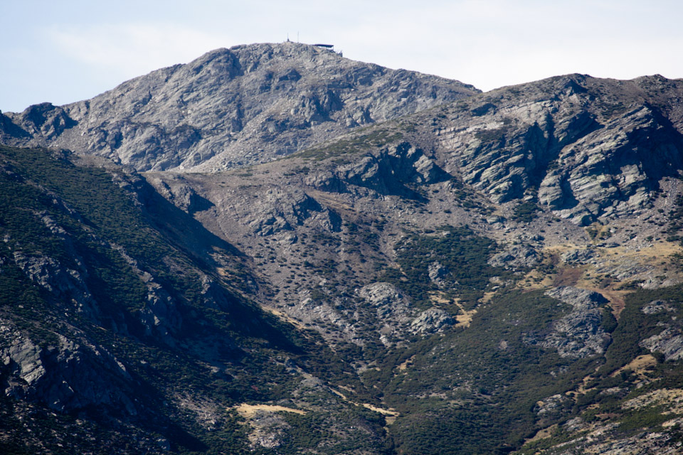 Ya hemos perdido de vista el Ocejón (2.048 metros), pero ya adivinamos en la lontananza las estribaciones del pico del Lobo. Esta última montaña, aun siendo el más alto de Castilla-La Mancha (2.273 metros) no tiene la elegancia del solitario y orgulloso Ocejón, nuestra montaña más emblemática. En realidad se trata de un picacho difícil de identificar, porque forma parte de una sucesión de montañas muy apretadas, y puede ser confundido con el Cervunal o el Alto de la Mesas. Si llevamos prismáticos, lo distinguiremos porque a pocos metros de la cumbre todavía sobrevive, herrumbroso y arruinado, el esqueleto de un antiguo telecabina de la estación de esquí de la Pinilla, cuyas pistas se extienden por la cara norte de la cadena montañosa, y que constituye la división administrativa entre Guadalajara y Segovia. Y también la separación –incomprensible para mí- entre las dos provincias castellanas que ahora campan por diferentes autonomías.