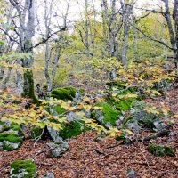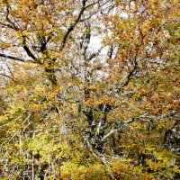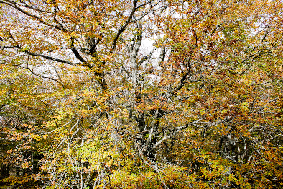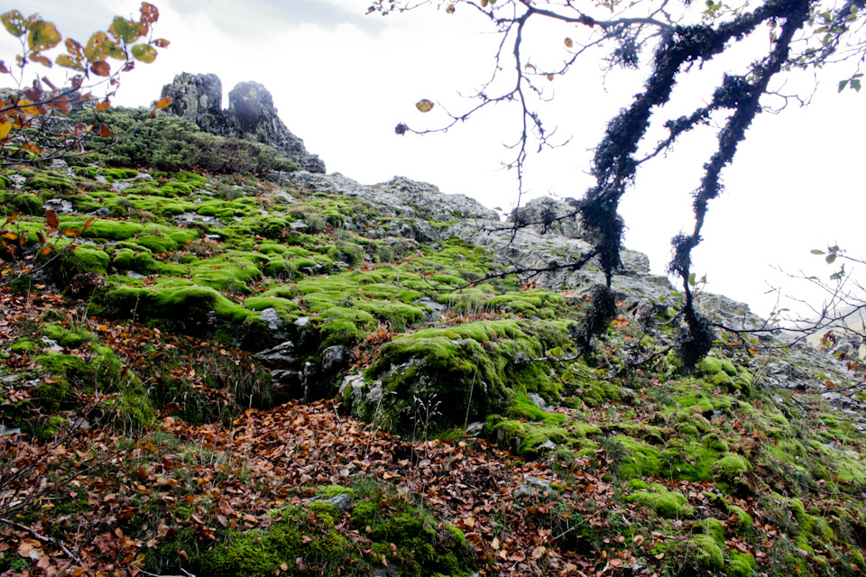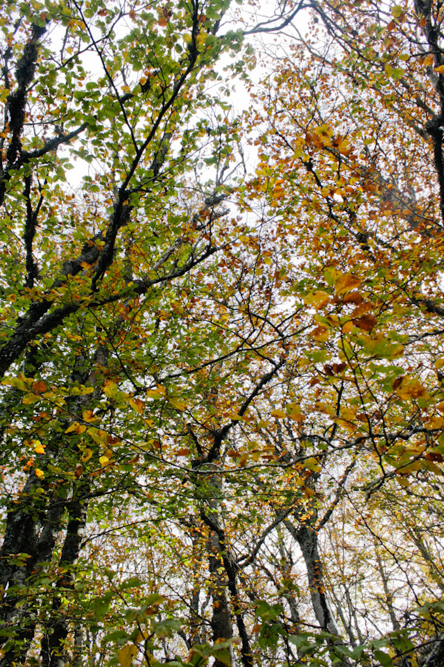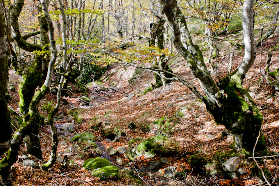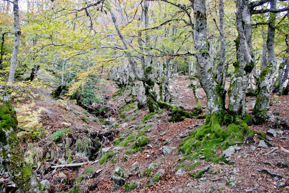 Hay unas 2.000 hayas en la Pedrosa, con hojas que ya amarillean, compartiendo espacio junto a los robles, que todavía se resiste al otoño y tiene el verde como color dominante, aunqueen este fin tendrá los tonos más ocres. Hay también serbales y algún acebo navideño, más difícil de ver.