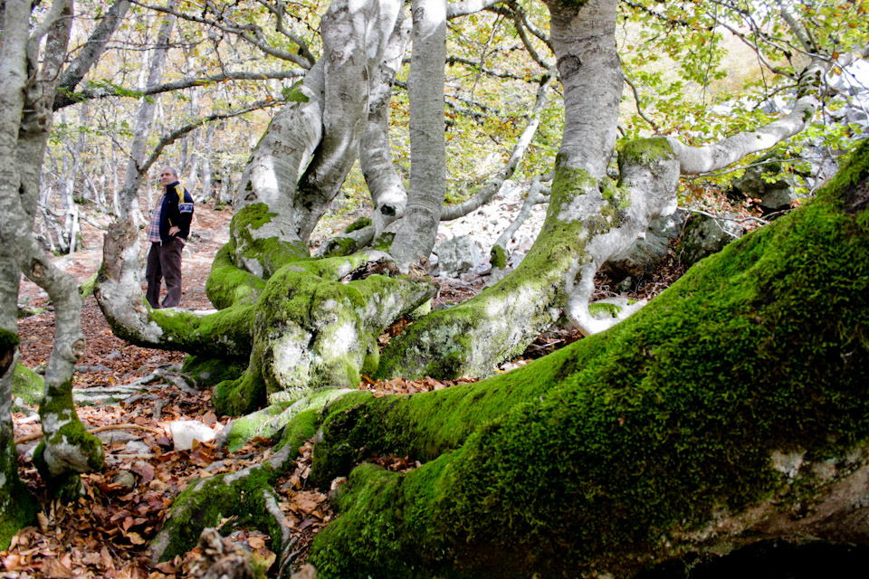 Hay que bajar para llegar hasta el hayedo de la Pedrosa, un espacio natural de dimensiones reducidas, unas 1.500 hectáreas entre 1.400 y 1.850 metros de altitud que discurre por la vertiente segoviana de La Quesera. Allí ha sobrevivido el haya, que en algunas zonas se mezcla con el roble, porque es un lugar abrigado que mira al norte mientras que en nuestra vertiente está más despejado y solo hay pinos, sabinas o melojos.