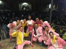 "El conejo de la Loles" durante su actuación en Poza de la Sal (Burgos). Desde 2009 llevan actuando por toda España con sus uniformes rosas de conejos tan peculiares y con casi 1000 actuaciones a sus espaldas se han convertido en una charanga de referencia en el panorama nacional.