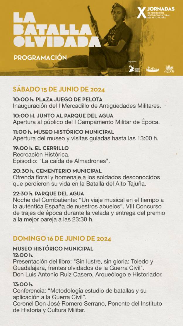 visitas guiadas, verbena popular y recreación histórica son algunas de las actividades que se van a celebrar los días 15 y 16 de junio de 2024 en Abánades como parte del proyecto de desarrollo comunitario y de recuperación patrimonial conocido como "La Batalla Olvidada” que ha sido recientemente declarada Fiesta de Interés Turístico Provincial por la Diputación de Guadalajara. Un actividad enmarcada dentro de las X Jornadas de Promoción Histórico-Cultural del Alto Tajuña.