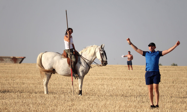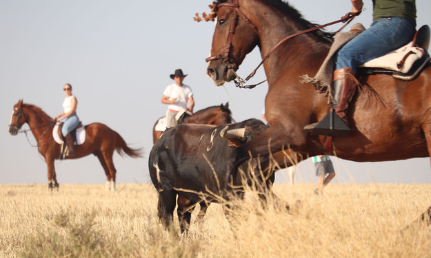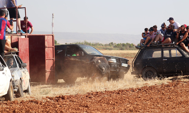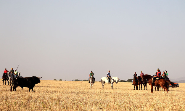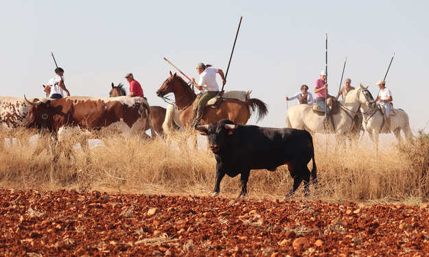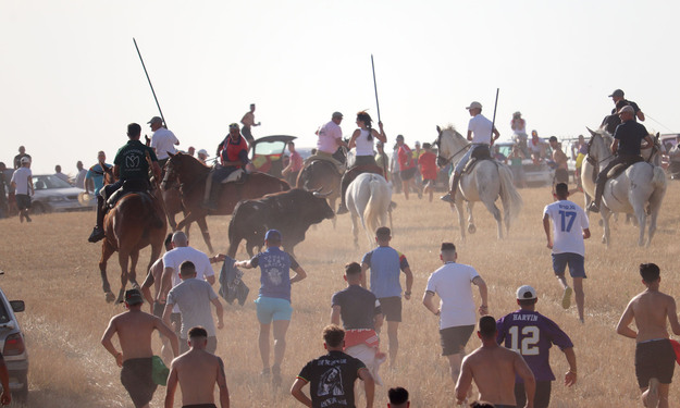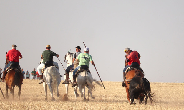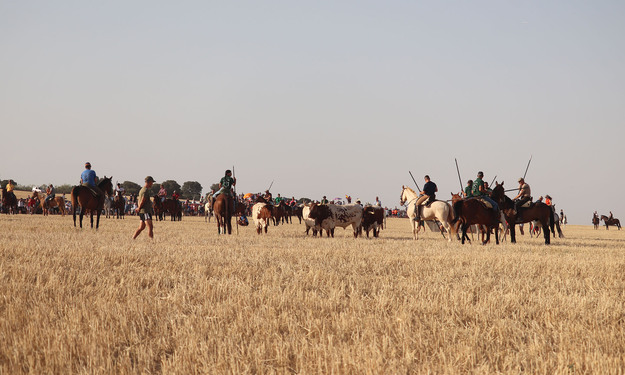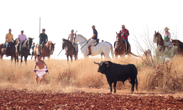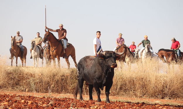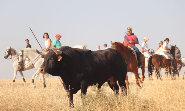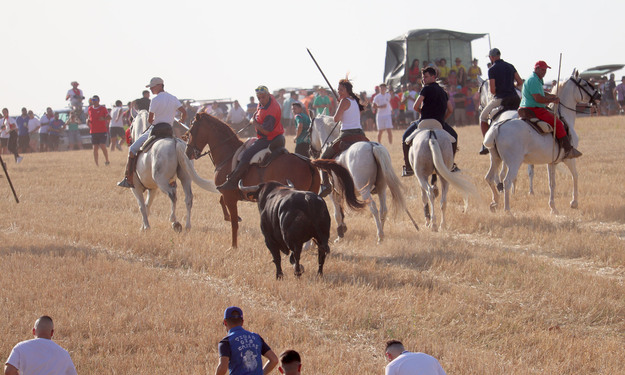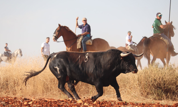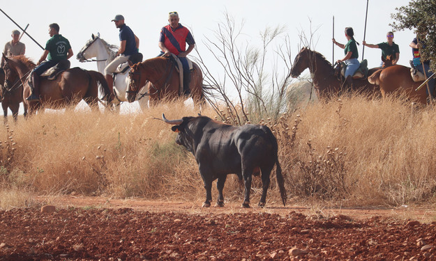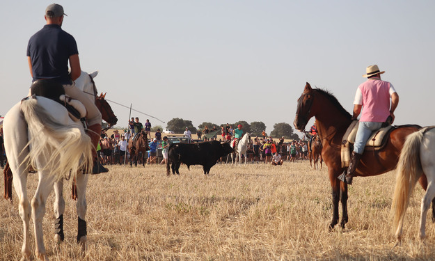 El magnífico resultado del encierro de 2023 había dejado el listón muy alto, pero la verdad es que en este 2024 el noble Jaracero, burel negro de preciosa estampa, permitió el lucimiento de los participantes más valerosos. Se pudieron ver recortes a cuerpo y sobre todo bellas carreras a la grupa de algunos avezados caballistas, que condujeron al toro con gran destreza, desde su salida del cajón, hasta acercarlo a la zona de estancia de los espectadores, que pudieron verlo con comodidad. El toro humillaba y embestía con franqueza, hasta que llegada la hora y cuarto de festejo el intenso calor se dejó notar en el animal, que ya bajó el ritmo de las embestidas.