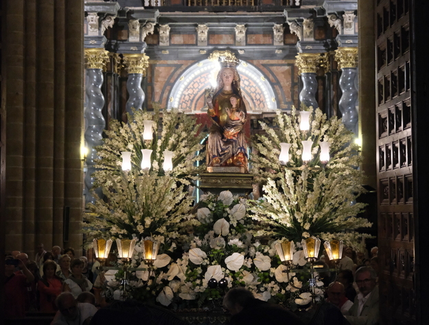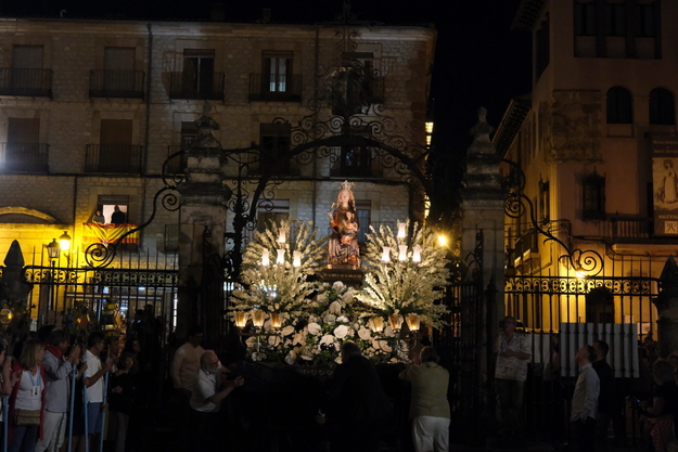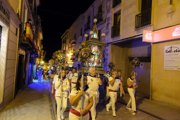 Un silencio sólo roto ocasionalmente por la música, y el sonar de todas las campanas de la ciudad. Así es esta procesión, que mezcla devoción, tradición, y arte. La imagen es del s. XIII, y sale en una carroza adornada con flores, seguida de cinco misterios elaborados en metal y cristal, sobre las andas portadas a hombros por los fieles.