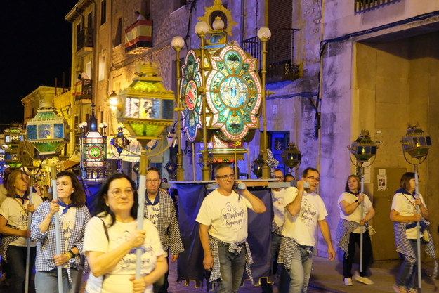 En la Procesión de los Faroles, la imagen de la Virgen de la Mayor es portada en una floreada carroza alumbrada por un monumental rosario de faroles (que fue realizado en 1926 en los talleres Quintana, en Zaragoza), a modo de antorchas, con cinco misterios del Rosario realizados en cristal y metal transportados a hombros, cinco padresnuestros, 50 avemarías y la letanía. Una procesión catalogada de Interés Turístico Regional.
