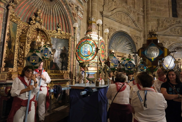 Una de las mayores tradiciones religiosas de Sigüenza es la procesión de 'Los Faroles' que se celebra el domingo posterior a la festividad de la Asunción de la Virgen. De esta manera, cuando cae la noche los cofrades acompañan a la Virgen de la Mayor en un 'sonoro' silencio y portan unos faroles que iluminan la imagen y la procesión.